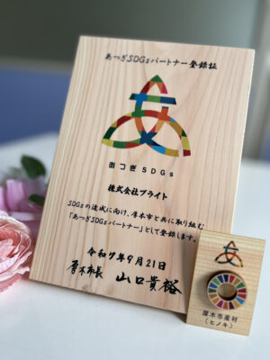 あつぎSDGsパートナー登録式に参加しました 2025.09.21 令和7年9月21日(日) アミューあつぎにて開催された 『 第4期あつぎSDGsパートナー 』登録式に参加し 山口貴裕市長より登録証が授与されました。 引き続き、SDGsの目標達成に向けた取り組みを積極的に推進して参ります。 VIEW ALL